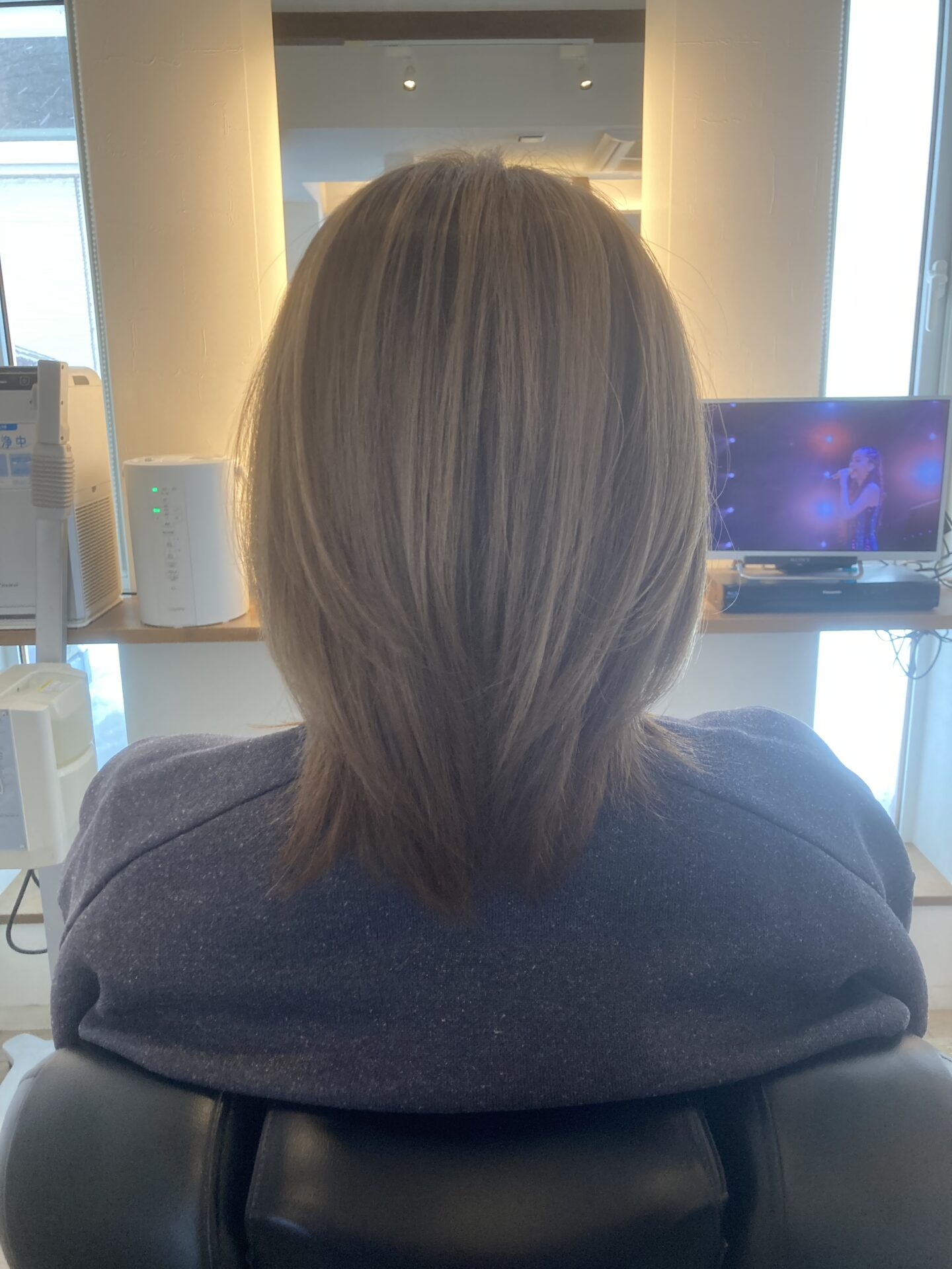 オーダー ⬜︎ カット………レイヤーカット ⬜︎ カラー………①エアタッチブリーチリタッチ ②根潰し…6ベージュ 中間〜毛先…グレージュ …