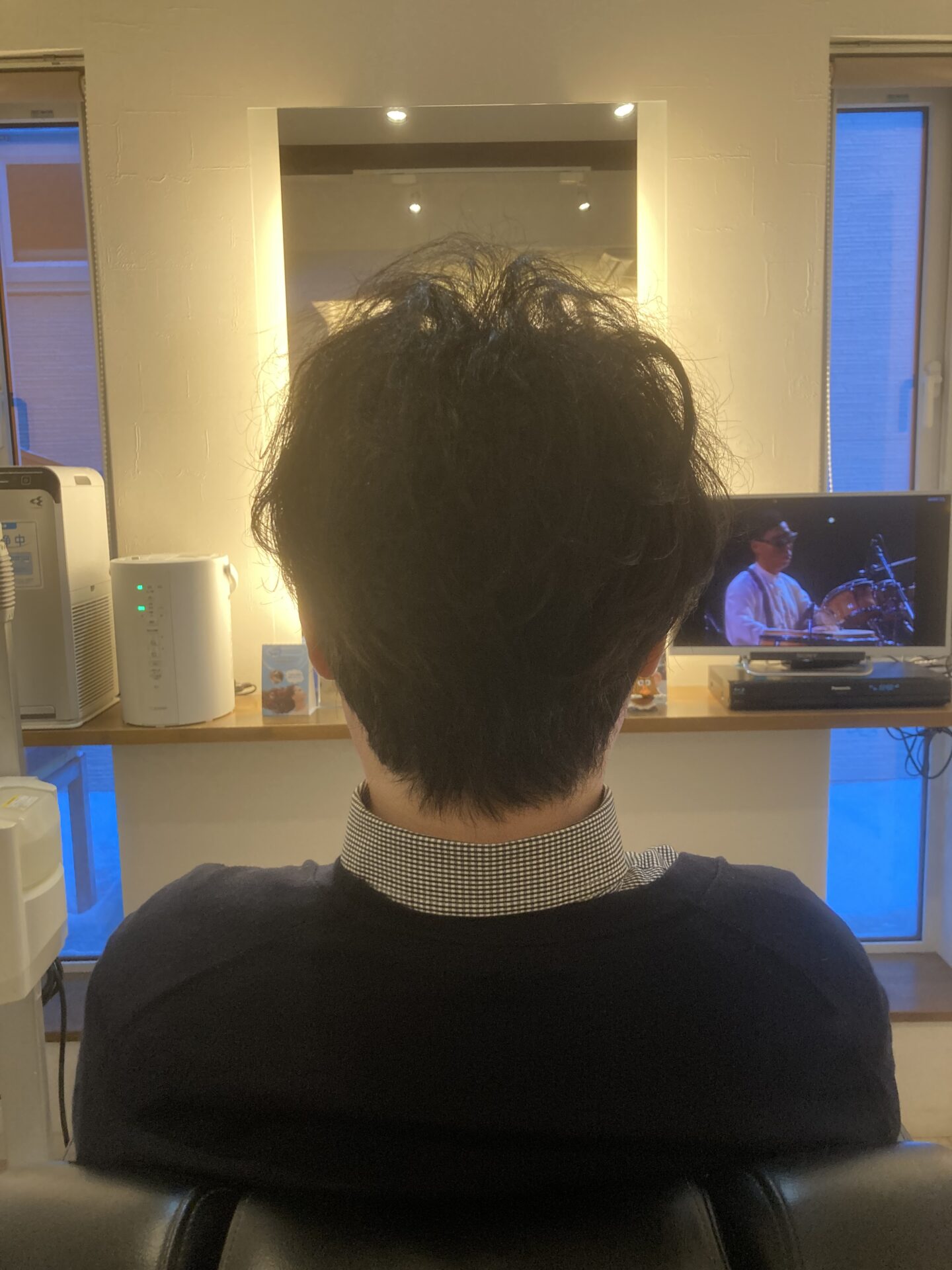 オーダー ⬜︎ カット………2ブロック サイド3㎜バリカン バック3㎜バリカンフェード サイド耳にかかるくらい フロント鼻半分の位置に設定 ⬜︎ パーマ………2回転…