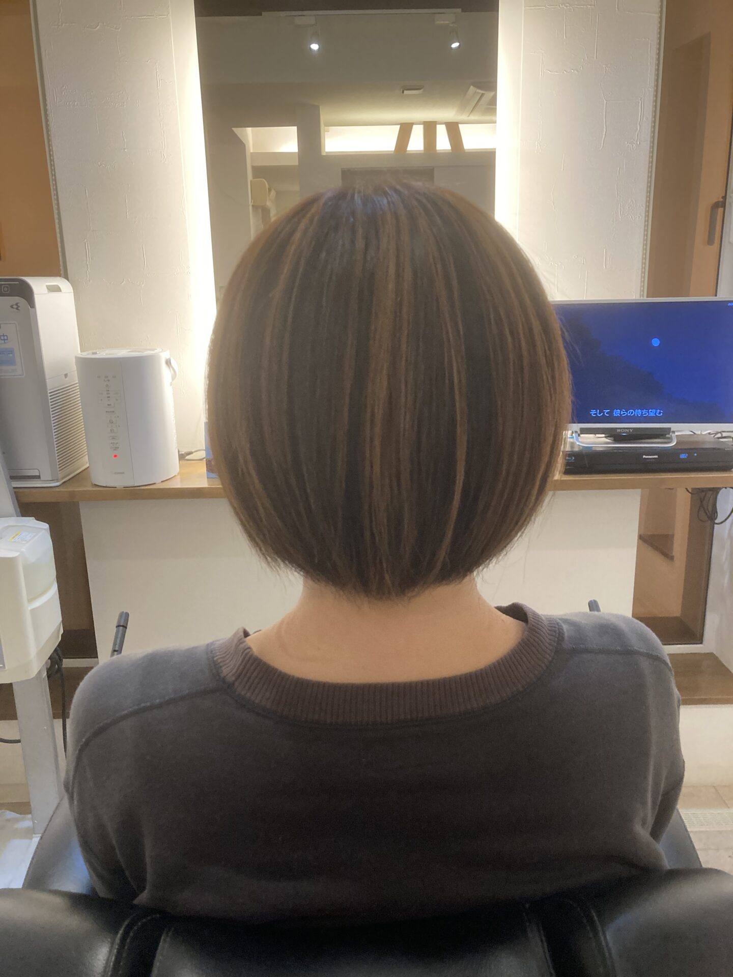 ⬜︎ カット………ショートボブ サイド顎上1cmに設定