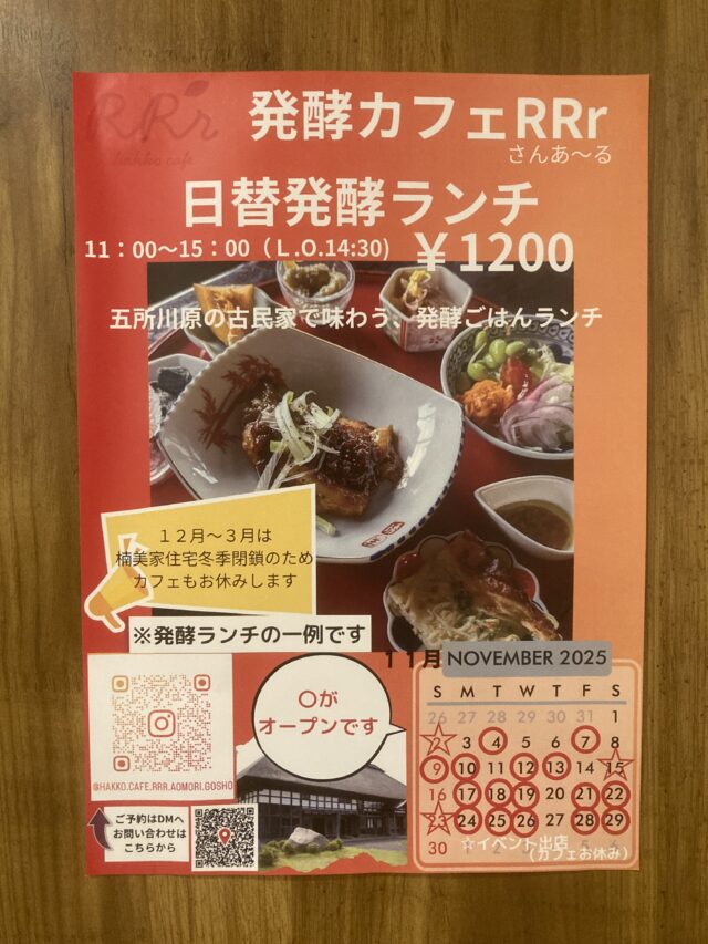 発酵カフェRRr 様は 冬の間は お休みだそうです。