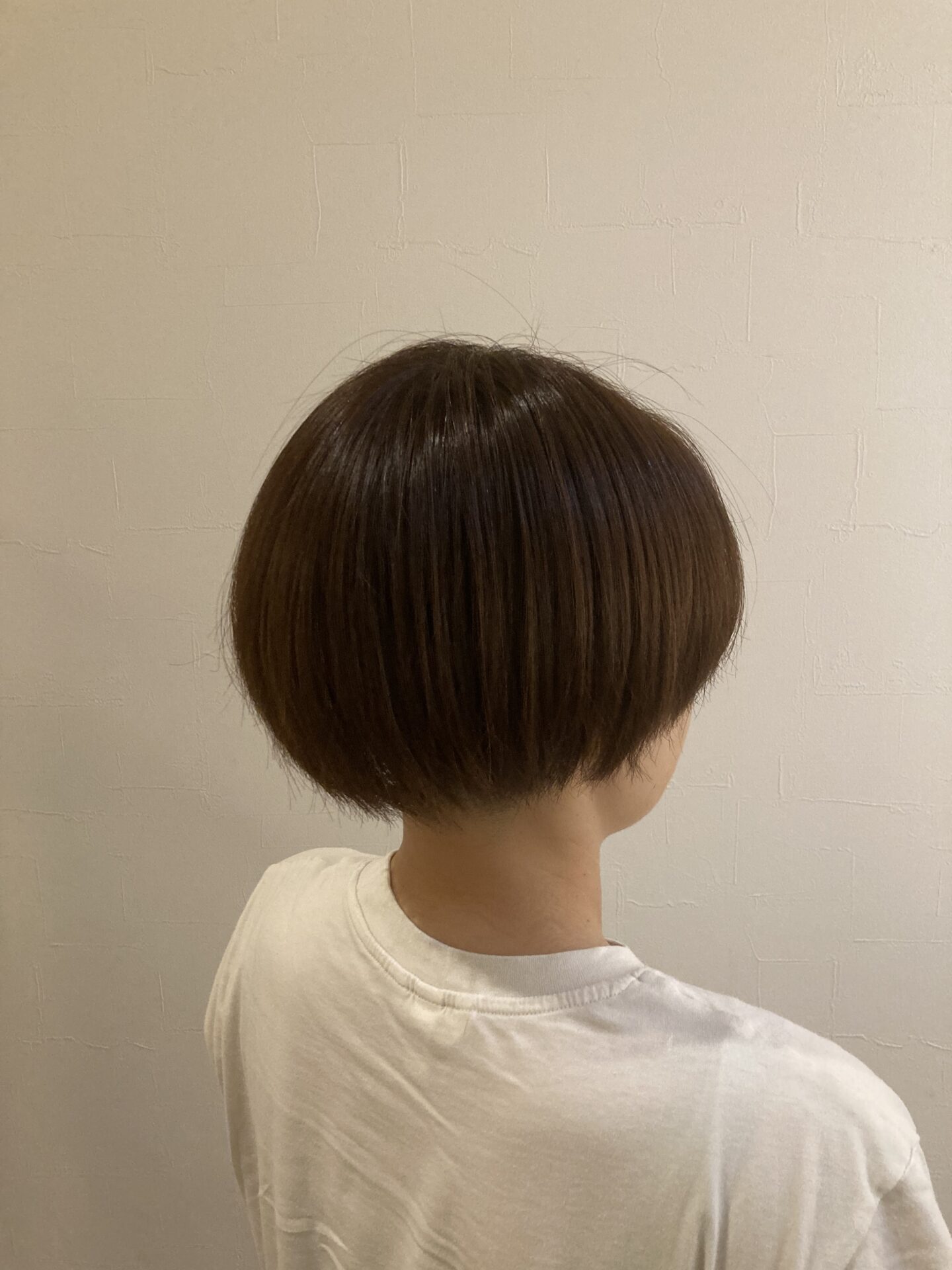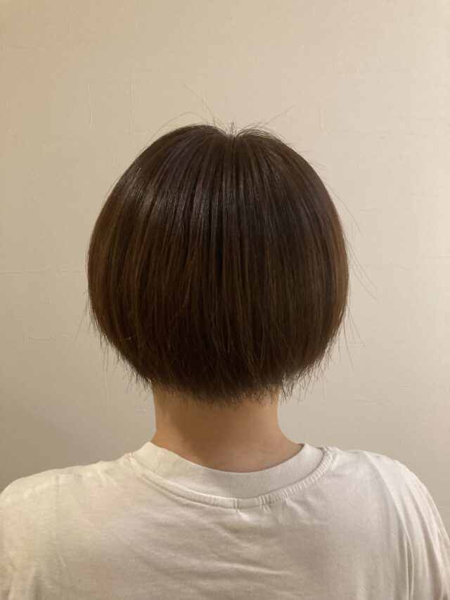 サイド耳たぶの位置からパックの生え際ぎり 前上がりスタイル