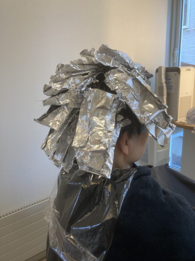 ①エアタッチブリーチ ②根潰し 5グレージュ5:3アッシュ1