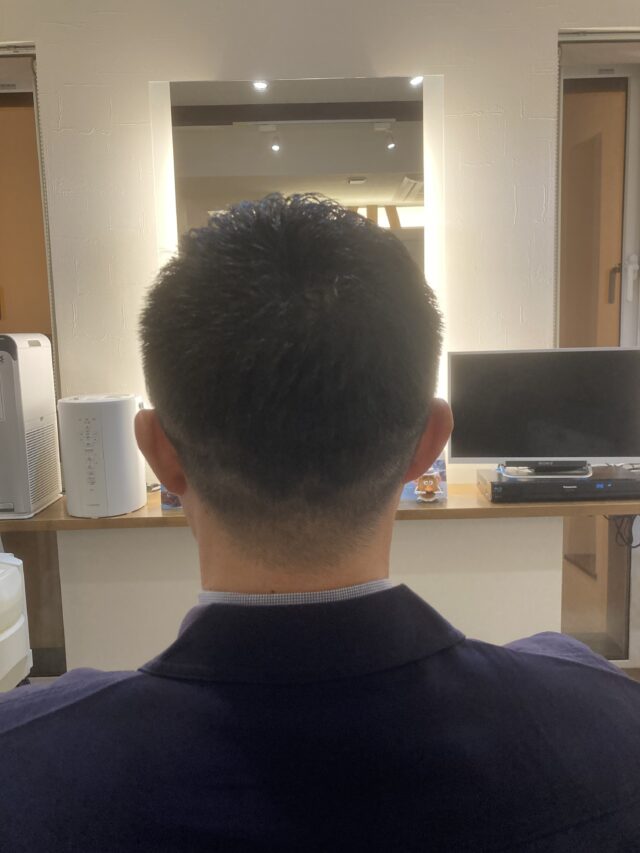 オーダー ⬜︎ カット………サイドバック3㎜バリカンフェード フロント3cmに設定 アイロンセットでパーマ風な仕上がりに …