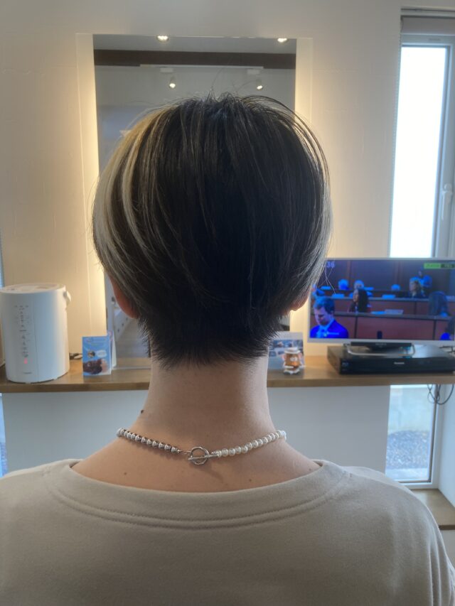 オーダー ⬜︎ カット………ショートスタイル ⬜︎ カラー………スライシングブリーチ スライシングブリーチで アクセント …